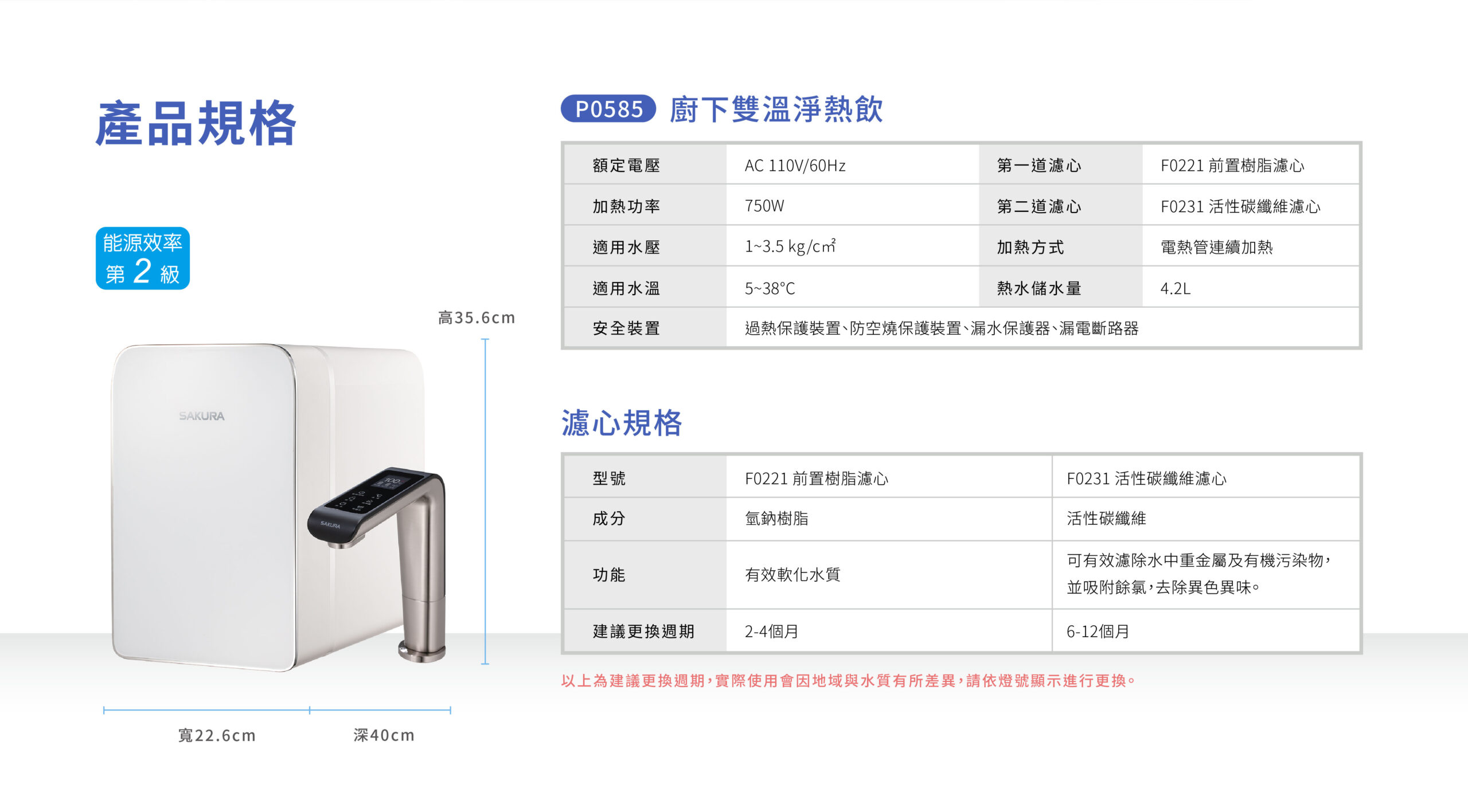 櫻花 P0531 廚下RO雙溫淨熱飲