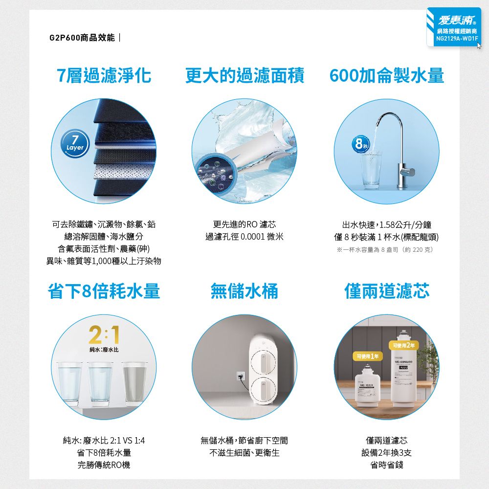 ● 擁有7層過濾淨化系統,可去除1,000種以上汙染物