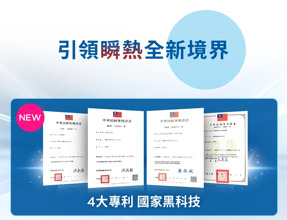● 3秒瞬熱,使用專利半導體鍍膜石英管
