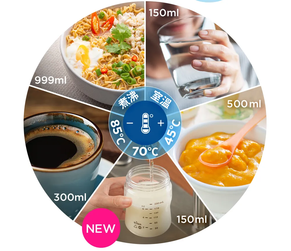 ● 五段水溫, 四段水量,升級泡奶專用70度C 最懂媽媽的需求