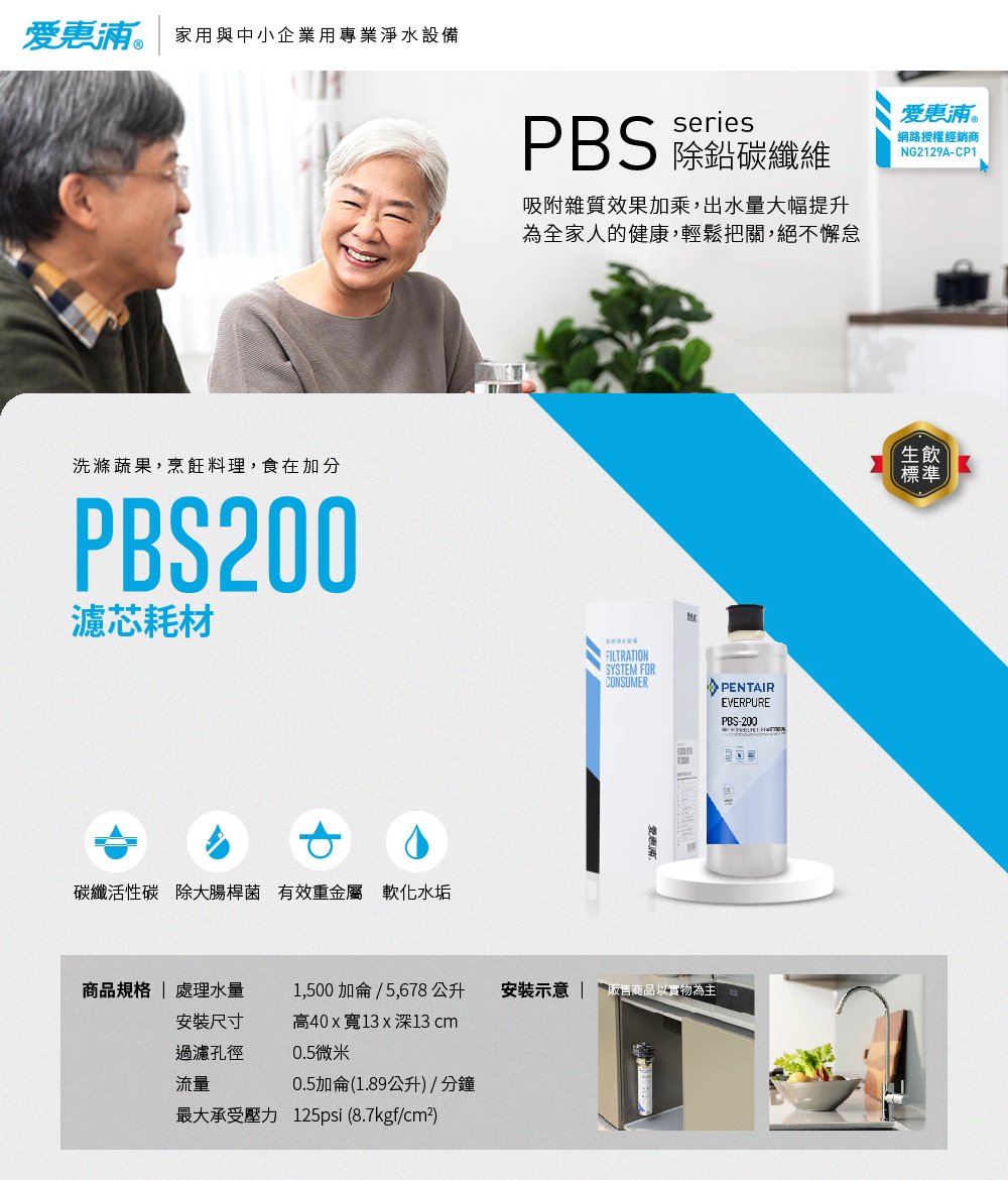● PBS200濾芯可去除重金屬鉛、銅、鎘、汞及大腸桿菌 *報告來源為SGS實驗室檢測