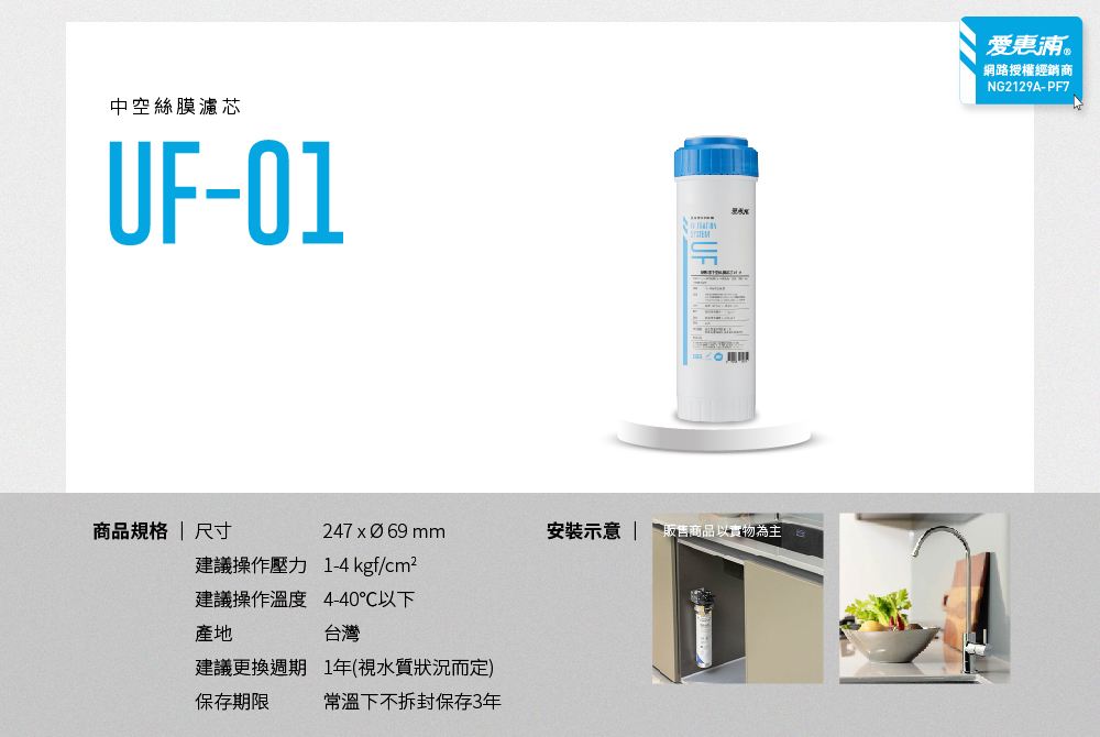 • 品名:UF-01 中空絲膜濾芯